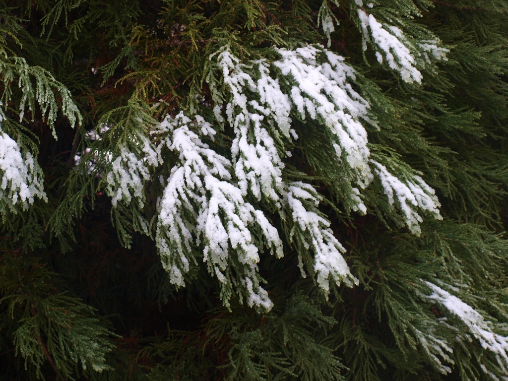 When I woke up, it was raining. When we left the house to take the ten minute drive to school, it was raining. A couple of minutes into the drive, it started pouring down snow! Big fluffy white flakes of the stuff! Thankfully I wasn’t the only one caught off guard by the weather. The line to drop off the kids at school was HUGE!! The kind people in charge of the school decided not to take attendance until 8:00 so the kids weren’t counted as being tardy. Whew! The snow has slowed down and we probably won’t get much, but here’s a picture of some on the tree out front (I took it from the porch because I didn’t want to go too far outside).